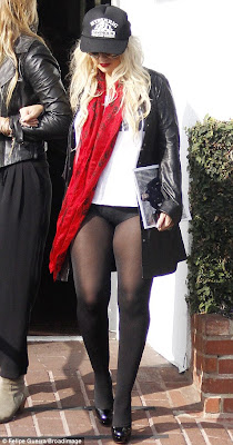Not a good look: The 30-year-old Dirrty singer wore just a pair of black underpants and stockings to shop at upscale department store Fred Segal in West Hollywood She accessorised the bizarre look with a pair of giant sunglasses, an oversized trucker cap and sky-high black Christian Louboutins.
